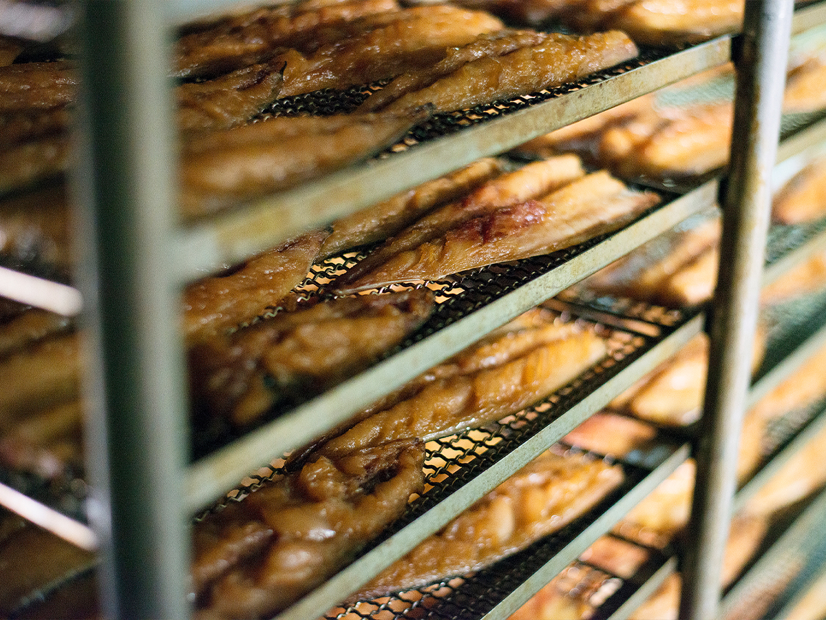 例えば、ししゃもの味を左右する乾燥作業では、湿度や温度に合わせてきめ細かく調整を行うなど、脂の乗り、艶の美しさ、すべてに職人技が光ります。